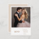 Celebrate your love story with this timelessly elegant wedding Response Card. The design features a full-page romantic couple's photo as the focal point, framed with clean typography for a perfect balance of modern simplicity and classic charm. The couple’s names and wedding date are prominently displayed in a sophisticated sans-serif font, while the additional details are presented in a graceful handwritten-style script below.