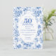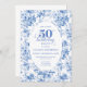 Timeless Royal Blue Toile de Jouy 50th Birthday Invitation