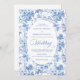 Make a refined first impression with this wedding invitation featuring classic French toile de jouy roses in elegant shades of navy blue, royal blue, dusty blue, and deep blue. Inspired by timeless European floral design, this invitation blends traditional sophistication with modern elegance, perfect for a classic, romantic, or formal wedding celebration.