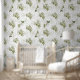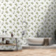 Timeless Sage Olive Watercolor Chic Wallpaper. Elevate your space with an elegant Mediterranean country pattern designed for peace. The neutral palette of this olive and floral design offers a versatile look that complements wood tones, gold accents, and white linens. This design brings an upscale, curated feel to your home.