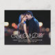 Elegant and stylish save the date announcement with photo featuring white modern script