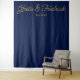 This personalised photo wall backdrop is beautiful, simple minimalist and elegant. The design features the newlyweds names, wedding date in gold script typography. All customisable, including the elegant, sophisticated and timeless navy blue background.