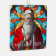 An absolutely stunning Christmas ornament perfect for a cherished spot on your tree! This design captures a warm, detailed portrait of Santa Claus holding a star and holly, beautifully rendered in the vibrant, illuminated style of traditional stained glass. The rich colors and classic imagery make this a timeless piece, ideal for commemorating a special year, gifting, or adding an elegant, classic holiday touch to any Christmas decor collection.