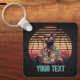 Timeless Tropical Cat Attitude Square keychain: A black cat wearing oversized sunglasses and a Hawaiian shirt strikes a cool pose against a tropical sunset.