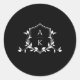 Timeless Vines Monogram Crest Black Classic Round Sticker