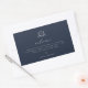 Elegant botanical greenery adorned crest, wedding monogram, navy blue welcome bag sticker.