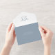 Elegant greenery adorned crest, wedding all in one invitation. Modern and timeless monogram wedding crest in dusty blue with trendy minimalist typography template.