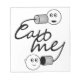 Retro-style design shows tin can phone with people on each end. In the middle the cord spells "Call Me."