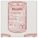 A retro advertising style poster of a tin of mackerel. This design is drawn in red, in a line art and half tone style.