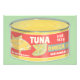 A retro advertising style illustration of a tin of tuna. This can of fish has a label which says that tuna is high in Omega 3 and sustainably fished. Mind for anyone who likes canned / tinned food