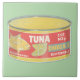 A retro advertising style illustration of a tin of tuna. This can of fish has a label which says that tuna is high in Omega 3 and sustainably fished. Mind for anyone who likes canned / tinned food