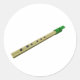 Sticker for tin whistle players and fans of the whistle. Features a tin whistle, also known as a pennywhistle, in gold and green. Modelled on a tin whistle in the key of D, the whistle is an inexpensive and is played widely as a solo instrument and as accompaniment to a wide genre of music styles, notably folk music. Fully customisable. Modify the background colour to another that suits your taste, add text and personalise with your name or, if you work in the music industry, add your company logo and give as a free gift in marketing to clients and fans