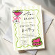 Tini bit older handrawn retro birthday party Invitation template instant download, pink and green retro birthday party invitations, wavy border coquette cake adults party invitations