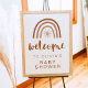 This baby shower welcome sign poster features a unique bohemian terracotta and rust rainbow with a sun in the middle. Easily edit most wording to meet the needs of your baby shower or event. 💜 COLORS ARE EDITABLE! Click 'edit design' to select your own colours.