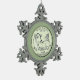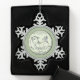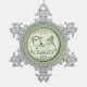 Stylish Christmas snowflake ornament with a tinted version of the U.S. Mint's Wisconsin State 2004 quarter design image (uncirculated reverse), featuring the head of a cow, a round of cheese and an ear of corn. on textured green background,