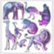 Fantastic set of stickers features blue to purple tinted illustrations of African / Zoo animals including elephant, lion, hippo and giraffe.