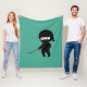 Tiny Angry Ninja on Dark Green Fleece Blanket