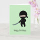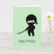 Cute but angry cartoon ninja dressed in black is holding a traditional Japanese katana sword.