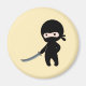 Cute but angry cartoon ninja dressed in black is holding a traditional Japanese katana sword.