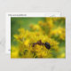 This postcard features a tiny red and black ant very busy feeding on the pollen of a goldenrod blossom on a sunny summer day. The yellow flowers and green leaves create a luminous background to set off this little creature.