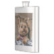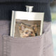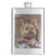 The product is a good size and came exactly as it was pictured.  The lid is not attached to the flask, which could be dangerous on drunken nights... The print came out surprisingly well and looks very sharp.  Would definitely recommend.