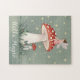 Tiny fairy perched on top of mushroom and glowing jigsaw puzzle
