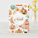 This cute card design captures the magic of this milestone with charming Halloween pumpkins, a happy pumpkin face, hearts, and candy. It's a lovely mix of eerie and charming, perfect for recalling the joy and cuteness of your child's first Halloween. Allow the fun to begin with this charming card that will spread smiles and Halloween spirit! The name on the card can be changed.