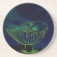 A tiny fog on a mushroom in front of a beautiful blue starry night sky.