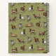 This notebook features a herd of tiny goats in all different colours on a muted green background.