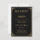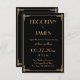 Tiny black and gold Great Gatsby art deco wedding invitations (3.5 inches by 5 inches), when the bride and groom are hosting, with changeable text