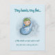 Announce your joyful news with heartwarming charm using this customisable pregnancy announcement postcard! Featuring an adorable, hand-painted baby illustration, this sweet design is perfect for sharing your excitement with friends and family. The front prominently features the beautiful sentiment: "Tiny hands, tiny feet... a little miracle we can't wait to meet! Baby Name arriving Month/Year" Personalise it easily with your baby's name and expected arrival month/year to create a truly special keepsake that celebrates your growing family. A delightful way to share your precious news!