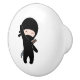 Happy cartoon ninja dressed in black with arm raised in waving. Traditional Japanese sword katana can be seen attached over his shoulder.