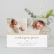 Sweet and elegant birth announcement features two newborn photos aligned side by side, with a band of gold foil beneath. Personalise with baby's name, birth stats, and a family message, adorned with a small gold foil heart.