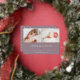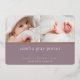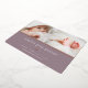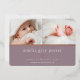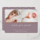 Sweet and elegant birth announcement features two newborn photos aligned side by side, with a band of rose gold foil beneath. Personalise with baby's name, birth stats, and a family message, adorned with a small rose gold foil heart on a dusty purple background.