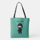Tiny Ninja Custom Name on Dark Green Tote Bag
