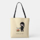 Cute cartoon ninja is cutting a watermelon so fast, all you can see is a little twitch of his katana sword. The front of the tote shows the ninja posed above a watermelon. The text reads “Ninjas are super fast!” The back shows the ninja with the already cut up watermelon. The text reads “You blink, you miss it!” Customisable text.