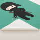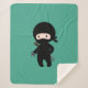 Tiny Ninja Holding Throwing Star on Dark Green Sherpa Blanket