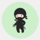 Tiny Ninja Holding Throwing Star on Green Classic Round Sticker