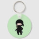 Tiny Ninja Holding Throwing Star on Green Key Ring