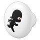 Cute cartoon ninja dressed in black is running while holding a throwing star.
