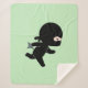 Cute cartoon ninja dressed in black is running while holding a throwing star.