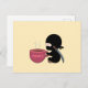 Tiny Ninja with Large Coffee Mug on Yellow Postcard