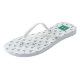 Celebrate summer with our super cute palm tree print flip flops! Preppy monogrammed design features an allover pattern of tiny tropical palms in green and brown on a crisp white background. Personalise with your single initial monogram at each heel on a matching emerald green badge. If not monogramming, simply delete the sample initial and click "clear" to remove the green square.