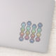 16 dog paw print stickers in rainbow hues to arrange into your own design.