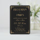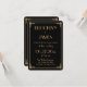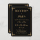 Tiny round black and gold orange Great Gatsby Art Deco style wedding invitations (3.5 inches by 5 inches), when the Bride and Groom are hosting, with changeable text