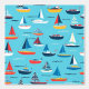 Tiny Sailing Boats in the Sea, Nautical Aqua Blue Wallpaper