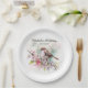 Women's birthday party custom paper plates with the painting of a cute little sparrow sitting among blossoms in the branches of a cherry tree. Personalised with the name of the guest of honour. Contact me for assistance with your customisations or to request additional matching or coordinating Zazzle products for your celebration.