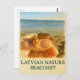This watercolor-style postcard captures a charming moment from the Latvian seacoast — a tiny crab gently held in hand against the tranquil backdrop of the Baltic Sea. A playful tribute to the natural wonders hiding along the Latvian shoreline, perfect for ocean lovers, nature collectors, and Baltic travelers.
