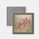A miniature vintage floral art print on a magnet.. Large rose flower cluster framed on a backdrop of antiqued writing paper. There are 5 other images to choose from in this series. Collect the set. Created with artwork from Cajoline and Lilach Oren