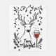 A funny and cheerful Christmas holiday design showcases an outline of a deer surrounded by snowflakes and fern branches. Beside the branches sits a glass of red wine. The handwritten text reads, "Tipsy and bright." This design is featured on a variety of products, making it a perfect gift for wine lovers.